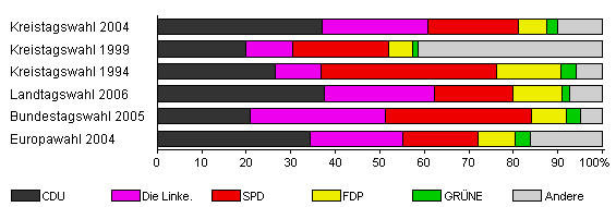 | Kreistagswahl 2004 | 50,2 | 37,0 | 23,8 | 20,4 | 6,4 | 2,3 | 10,2 | |