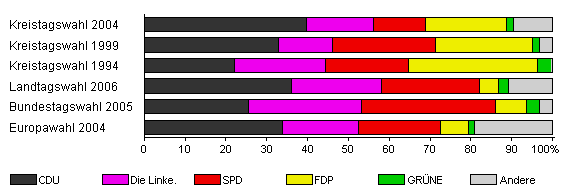 | Kreistagswahl 2004 | 48,5 | 39,8 | 16,3 | 12,7 | 19,8 | 1,9 | 9,6 | |