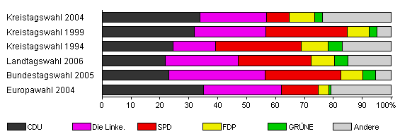 | Kreistagswahl 2004 | 44,7 | 33,9 | 22,9 | 8,0 | 8,7 | 2,8 | 23,7 | |