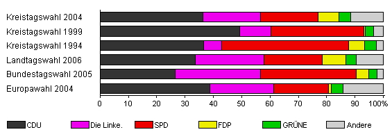 | Kreistagswahl 1994 | 81,3 | 36,5 | 6,5 | 44,7 | 5,6 | 4,1 | 2,6 | |