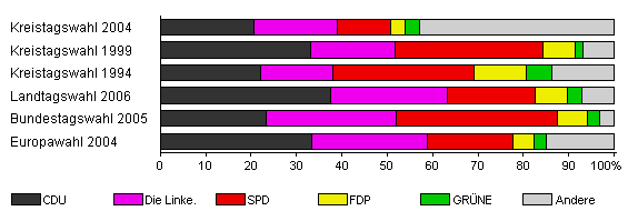 | Kreistagswahl 2004 | 42,4 | 20,5 | 18,6 | 11,7 | 3,2 | 3,2 | 42,8 | |