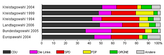 | Kreistagswahl 2004 | 46,9 | 50,7 | 12,3 | 17,4 | 3,4 | 8,7 | 7,5 | |