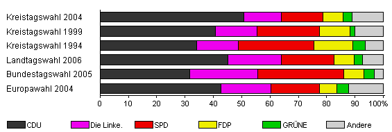 | Kreistagswahl 2004 | 47,8 | 50,8 | 13,1 | 14,7 | 7,2 | 3,2 | 10,9 | |