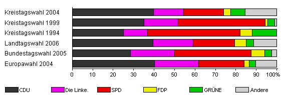 | Kreistagswahl 2004 | 43,0 | 39,7 | 14,6 | 19,8 | 3,4 | 7,0 | 15,4 | |