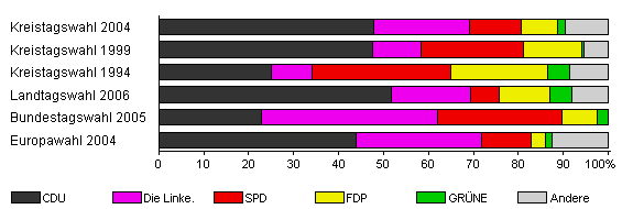 | Landtagswahl 2006 | 54,2 | 51,6 | 17,7 | 6,5 | 11,3 | 4,8 | 8,1 | |