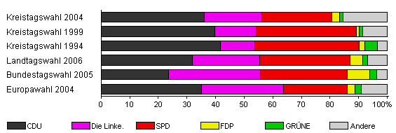 | Kreistagswahl 2004 | 41,7 | 36,0 | 20,1 | 24,5 | 2,7 | 1,2 | 15,5 | |