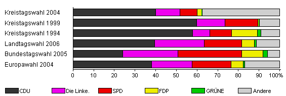 | Kreistagswahl 2004 | 44,4 | 40,0 | 11,7 | 8,3 | 2,2 | 0,3 | 37,5 | |