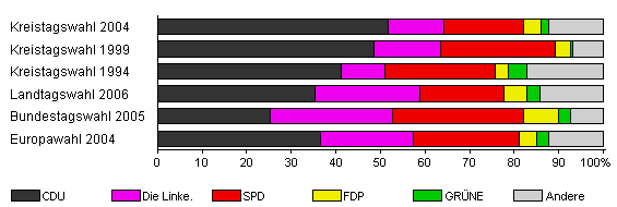 | Kreistagswahl 2004 | 56,5 | 51,8 | 12,3 | 18,0 | 3,9 | 1,8 | 12,2 | |