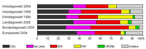 | Kreistagswahl 2004 | 52,4 | 33,9 | 12,1 | 21,2 | 7,8 | 0,2 | 24,8 | |