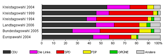 | Kreistagswahl 2004 | 52,9 | 55,0 | 19,2 | 14,6 | 5,6 | x | 5,6 | |