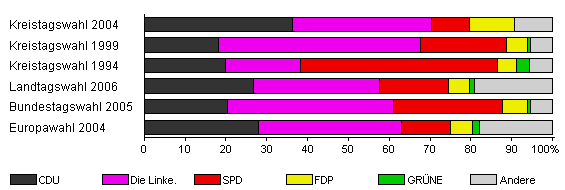 | Kreistagswahl 2004 | 55,2 | 36,2 | 34,2 | 9,2 | 11,1 | x | 9,2 | |