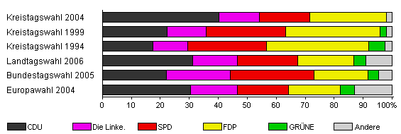 | Kreistagswahl 2004 | 55,5 | 40,2 | 13,9 | 17,5 | 26,4 | x | 2,1 | |