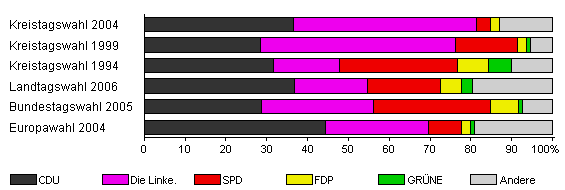 | Kreistagswahl 2004 | 61,9 | 36,6 | 44,8 | 3,5 | 2,2 | - | 12,9 | |
