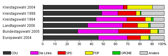 | Kreistagswahl 1994 | 75,7 | 44,0 | 25,0 | 15,3 | 4,9 | 1,7 | 9,0 | |