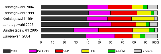 | Kreistagswahl 2004 | 53,4 | 39,8 | 17,5 | 20,8 | 9,4 | 3,9 | 8,5 | |