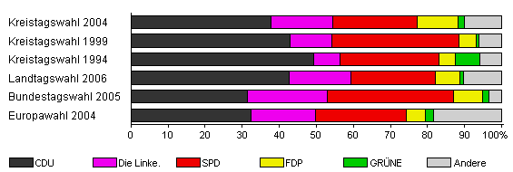 | Kreistagswahl 2004 | 43,9 | 37,7 | 16,7 | 22,8 | 11,1 | 1,6 | 10,3 | |