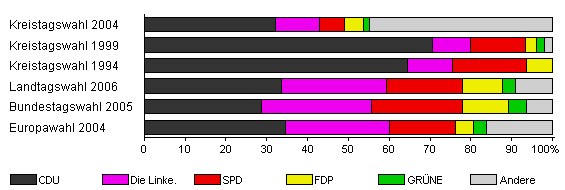 | Kreistagswahl 2004 | 61,6 | 32,2 | 10,6 | 6,3 | 4,5 | 1,5 | 44,9 | |