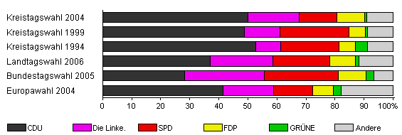 | Kreistagswahl 2004 | 45,0 | 50,1 | 17,5 | 13,1 | 9,4 | 0,8 | 9,2 | |