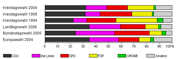 | Kreistagswahl 2004 | 49,8 | 32,1 | 16,4 | 16,4 | 20,5 | 1,6 | 13,0 | |