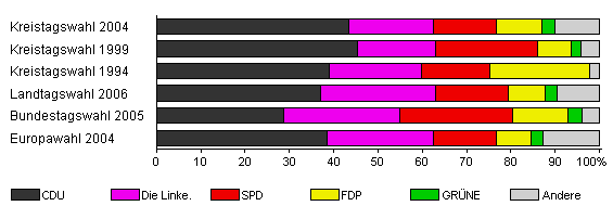 | Kreistagswahl 2004 | 40,8 | 43,5 | 19,0 | 14,1 | 10,4 | 2,9 | 10,2 | |