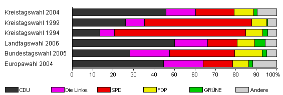 | Kreistagswahl 2004 | 46,2 | 45,8 | 14,5 | 18,9 | 9,5 | 1,7 | 9,5 | |