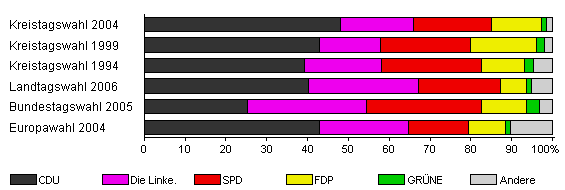 | Kreistagswahl 2004 | 36,9 | 48,0 | 17,9 | 19,2 | 12,2 | 1,1 | 1,5 | |