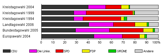| Kreistagswahl 2004 | 40,9 | 40,0 | 15,0 | 13,2 | 6,5 | 0,9 | 24,5 | |