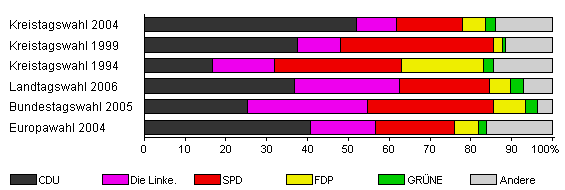 | Kreistagswahl 2004 | 51,3 | 51,9 | 9,8 | 16,2 | 5,6 | 2,5 | 14,0 | |