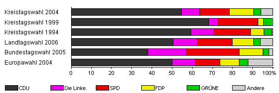 | Kreistagswahl 2004 | 71,2 | 54,7 | 8,9 | 14,8 | 12,0 | 3,6 | 6,0 | |
