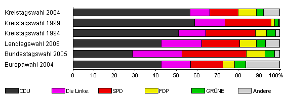| Kreistagswahl 2004 | 49,8 | 56,6 | 9,5 | 13,9 | 8,8 | 3,3 | 7,8 | |