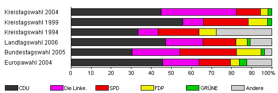 | Kreistagswahl 2004 | 48,4 | 44,9 | 37,5 | 12,0 | 3,7 | 1,9 | x | |