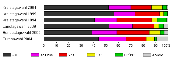 | Kreistagswahl 2004 | 47,3 | 51,9 | 17,9 | 16,7 | 8,9 | 3,3 | 1,3 | |