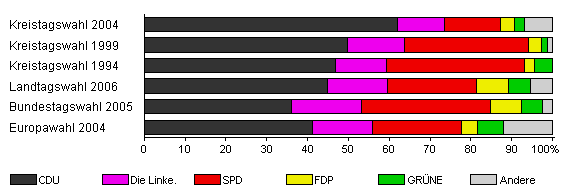 | Kreistagswahl 1999 | 78,6 | 49,7 | 14,0 | 30,3 | 3,3 | 1,4 | 1,4 | |