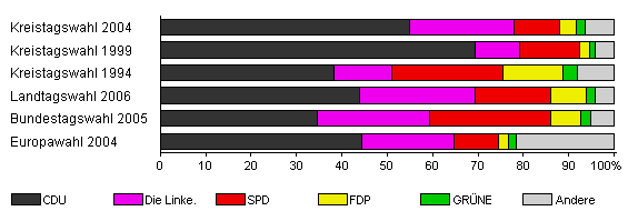 | Kreistagswahl 2004 | 53,6 | 54,8 | 23,1 | 10,1 | 3,6 | 1,9 | 6,5 | |