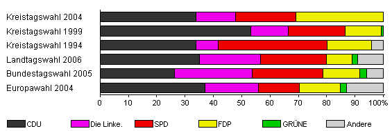 | Kreistagswahl 2004 | 46,0 | 33,9 | 13,9 | 21,3 | 30,9 | - | x | |