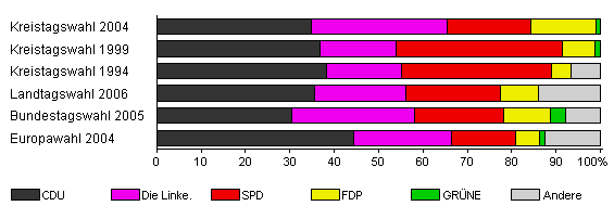 | Kreistagswahl 2004 | 40,2 | 34,9 | 30,5 | 18,8 | 14,7 | 1,0 | x | |
