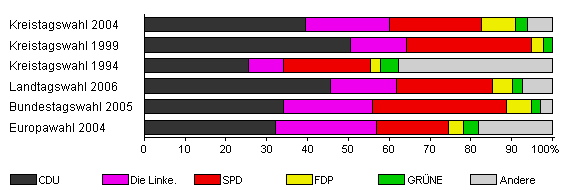 | Kreistagswahl 2004 | 57,8 | 39,5 | 20,5 | 22,6 | 8,3 | 2,9 | 6,2 | |