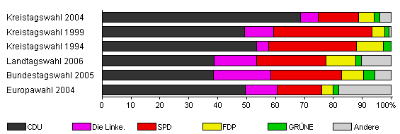 | Kreistagswahl 2004 | 59,6 | 68,5 | 6,3 | 14,0 | 5,2 | 2,0 | 4,1 | |