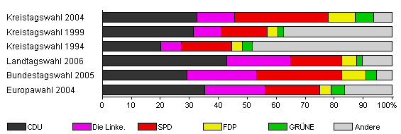 | Kreistagswahl 2004 | 55,7 | 32,7 | 12,9 | 32,4 | 9,3 | 6,4 | 6,4 | |