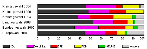 | Kreistagswahl 2004 | 54,4 | 45,8 | 28,0 | 6,0 | 16,1 | 1,0 | 3,1 | |