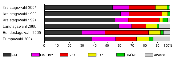 | Kreistagswahl 2004 | 61,6 | 54,2 | 13,2 | 20,8 | 9,4 | 1,3 | 1,3 | |