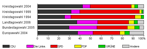 | Kreistagswahl 2004 | 51,1 | 42,3 | 7,3 | 38,7 | 3,2 | 2,9 | 5,6 | |