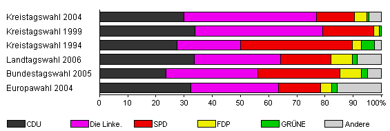 | Kreistagswahl 2004 | 40,1 | 29,9 | 47,0 | 13,4 | 4,6 | 0,7 | 4,3 | |