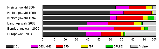 | Kreistagswahl 2004 | 75,8 | 64,6 | 11,7 | 15,0 | 5,8 | x | 2,9 | |