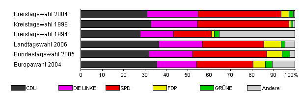 | Kreistagswahl 2004 | 45,0 | 31,1 | 23,7 | 38,9 | 3,7 | 1,9 | 0,7 | |