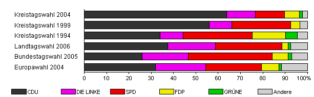 | Kreistagswahl 2004 | 70,4 | 63,8 | 12,8 | 13,1 | 6,7 | 1,5 | 2,0 | |