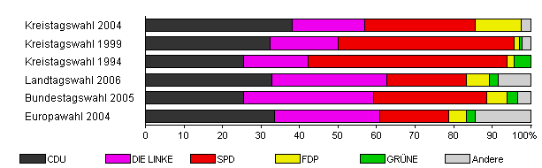 | Kreistagswahl 2004 | 46,6 | 38,1 | 18,9 | 28,6 | 12,0 | x | 2,4 | |