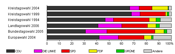 | Kreistagswahl 1994 | 72,9 | 46,8 | 6,6 | 28,7 | 5,7 | 3,3 | 9,0 | |