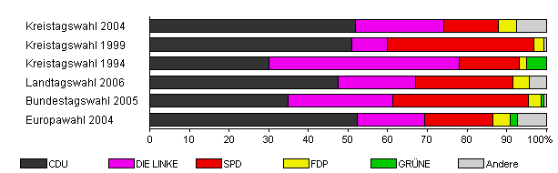 | Kreistagswahl 2004 | 61,2 | 51,9 | 22,3 | 13,8 | 4,6 | x | 7,4 | |