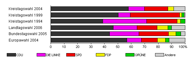 | Kreistagswahl 2004 | 63,6 | 57,8 | 11,9 | 17,5 | 4,3 | x | 8,5 | |